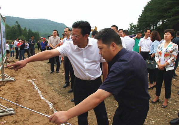 开工仪式前,市委常委、区委书记蔡邦银一行对开工项目相关情况进行了详细调研。