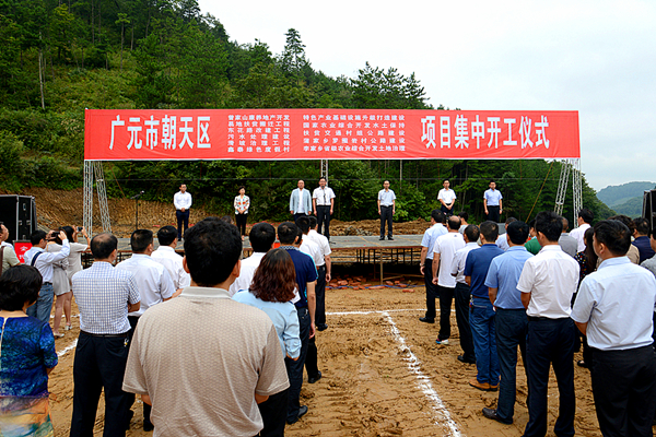 本网讯(黄凤来)8月31日,朝天区2016年第三季度项目集中开工仪式在曾家山康养地产项目建设现场隆重举行。市委常委、区委书记蔡邦银出席并宣布项目开工;市住建局党组成员、纪检组长何培成出席开工仪式;区人大常委会主任梁黎、区政协主席张晓春出席开工仪式;区委副书记罗凌云出席开工仪式并致辞;区委副书记邹进主持开工仪式。
