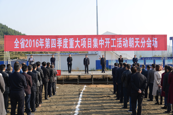 本网讯(王杰)10月31日,四川省2016年四季度重大项目集中开工朝天分会场开工仪式在转斗乡西成客专朝天站建设现场隆重举行。市委常委、区委书记蔡邦银出席开工仪式并宣布项目开工,区委副书记、区长伏玉琼致辞,区政协主席张晓春,市交通运输局党组成员、副局长王强出席开工仪式,区委副书记罗凌云主持开工仪式,区委副书记邹进出席开工仪式。